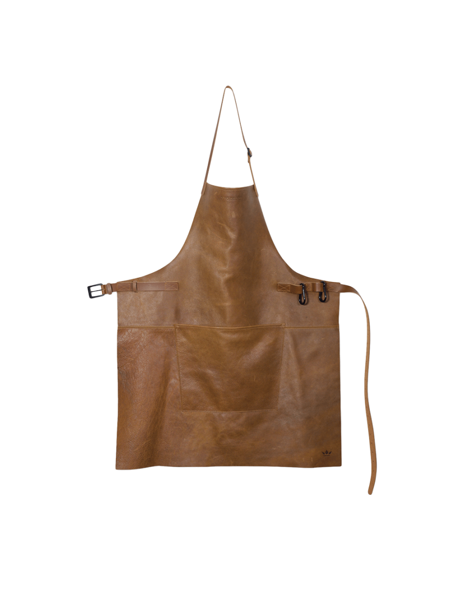 Diese klassische und charakteristische Grillschürze ist aus 100 % vollnarbigem, drapierendem Leder hergestellt. Sie sieht nicht nur toll aus, sondern ist auch ein sehr praktisches Küchenaccessoire mit hohem Komfort beim tragen. Sie ist mit einer transparenten, schmutzabweisenden Beschichtung versehen und daher leicht mit einem nassen Handtuch zu reinigen. Ein Naturprodukt, das mit den Jahren immer besser aussieht.