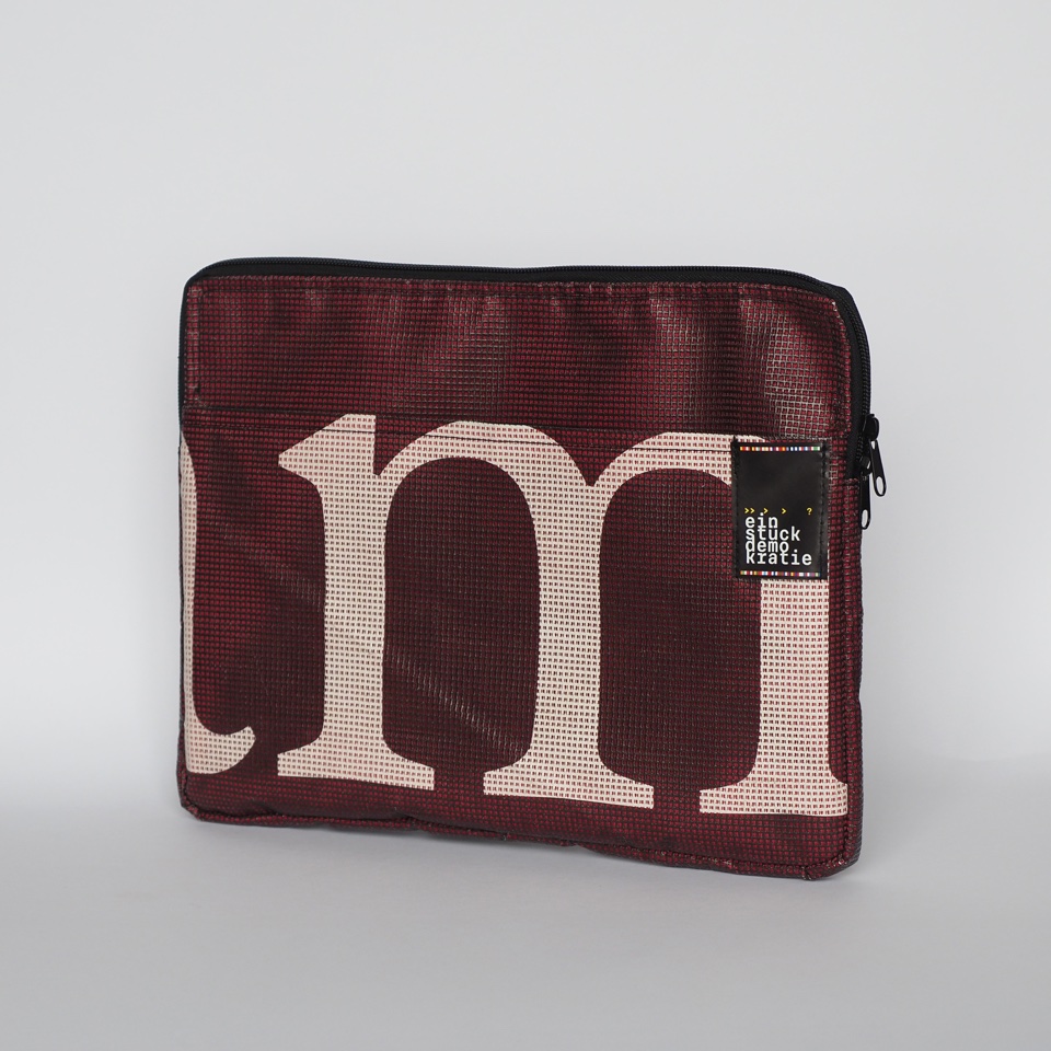 Lässige Schultertasche mit Innenfutter. Mit Reißverschluss und Label „Ein Stück Demokratie“.
